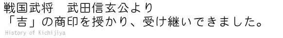 この越後塩移入の努めを果たし、国内の塩飢餓を救った活躍に対し、信玄公より当時の甲斐の国の通貨「甲州金」の裏刻印である「吉」の字を屋号として送られ、「吉字屋」が誕生しました。